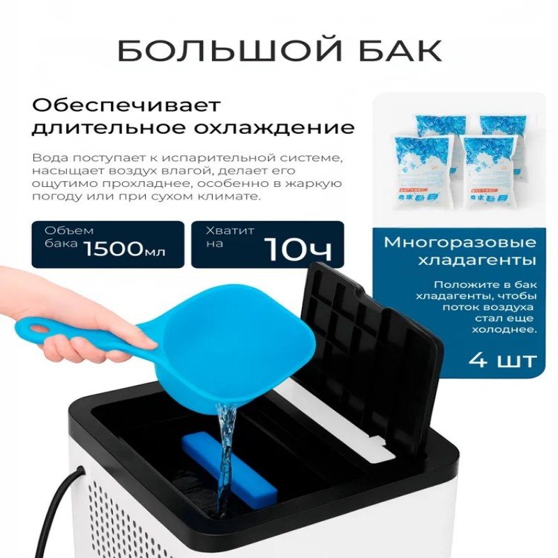 КомплектацияОхладитель воздуха, 2 аккумулятора холода, пульт ДУ