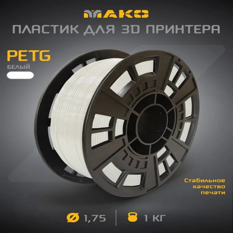 Пластик для 3D печати PETG МАКО 1.75 "Белый", 1 кг