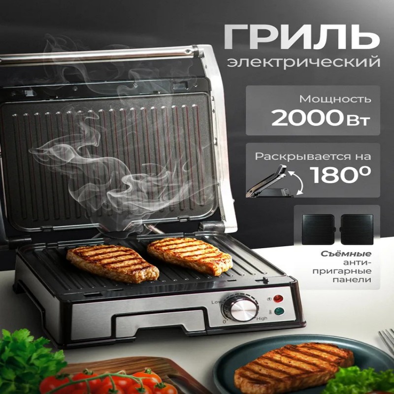 Гриль электрический со съёмными панелями, электрогриль RAF 2000 Вт