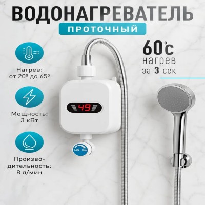 Водонагреватель проточный с душем, 8л/мин