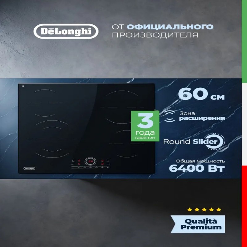 Электрическая варочная панель DeLonghi VITTORIO 1E1F CR – это надежность, безопасность и высокое качество от итальянского бренда.