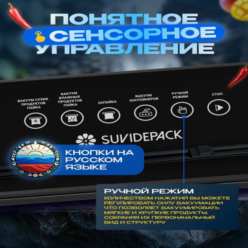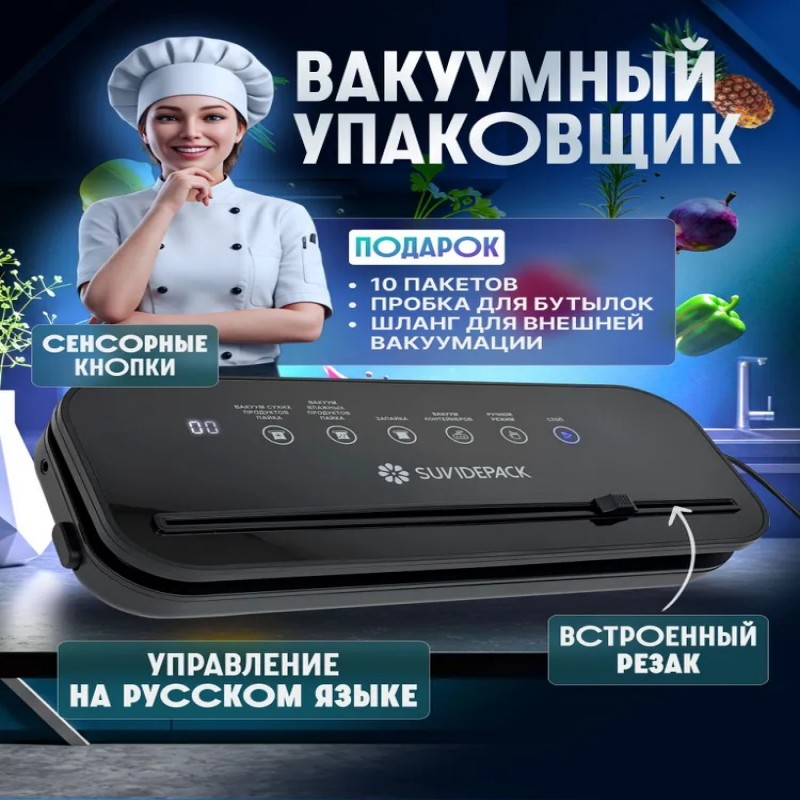 Управление на русском языке и подробная инструкция также на русском языке делают использование устройства максимально комфортным и интуитивно понятным. Этот вакуумный упаковщик для продуктов станет отличным подарком как для себя, так и для ваших близких.