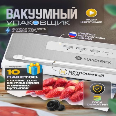 Встречайте новейший Вакууматор для продуктов SuvidePack VS8811 — идеальное решение для сохранения свежести ваших продуктов на долгое время. Этот надежный и высококачественный вакуумный упаковщик станет незаменимым помощником на вашей кухне, позволяя сохранить вкус и питательные свойства продуктов до момента их употребления.