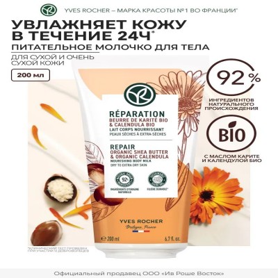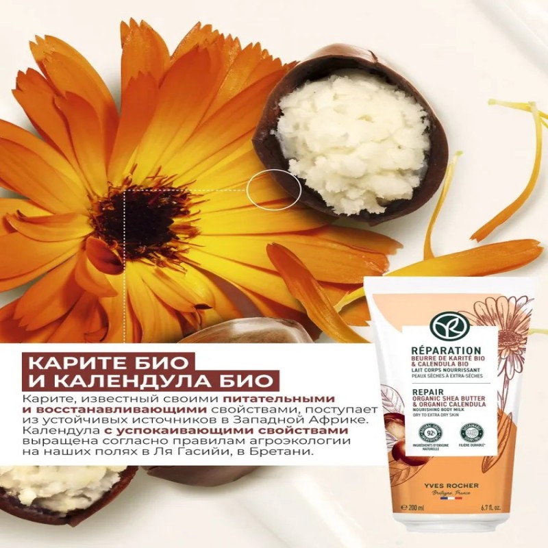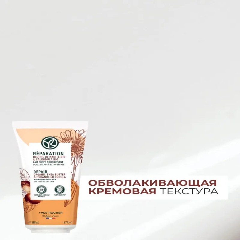 Питательное молочко, обогащенное маслом Карите БИО и Календулой БИО, увлажняет кожу в течение 24Ч*. Мгновенно кожа вновь обретает ощущение комфорта, она избавлена от чувства стянутости и изо дня в день защищена от сухости. Кожа становится эластичной, мягкой и шелковистой на ощупь.
