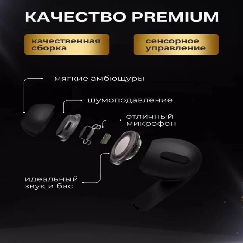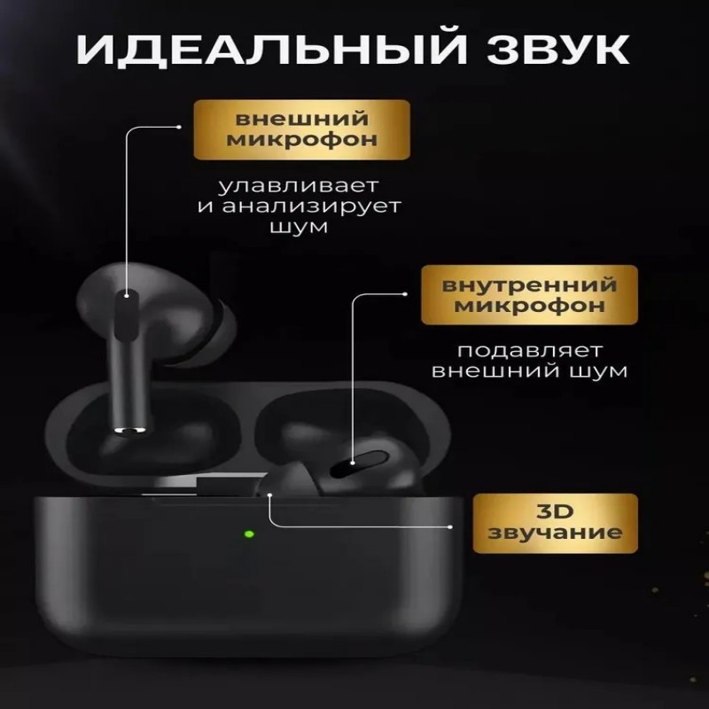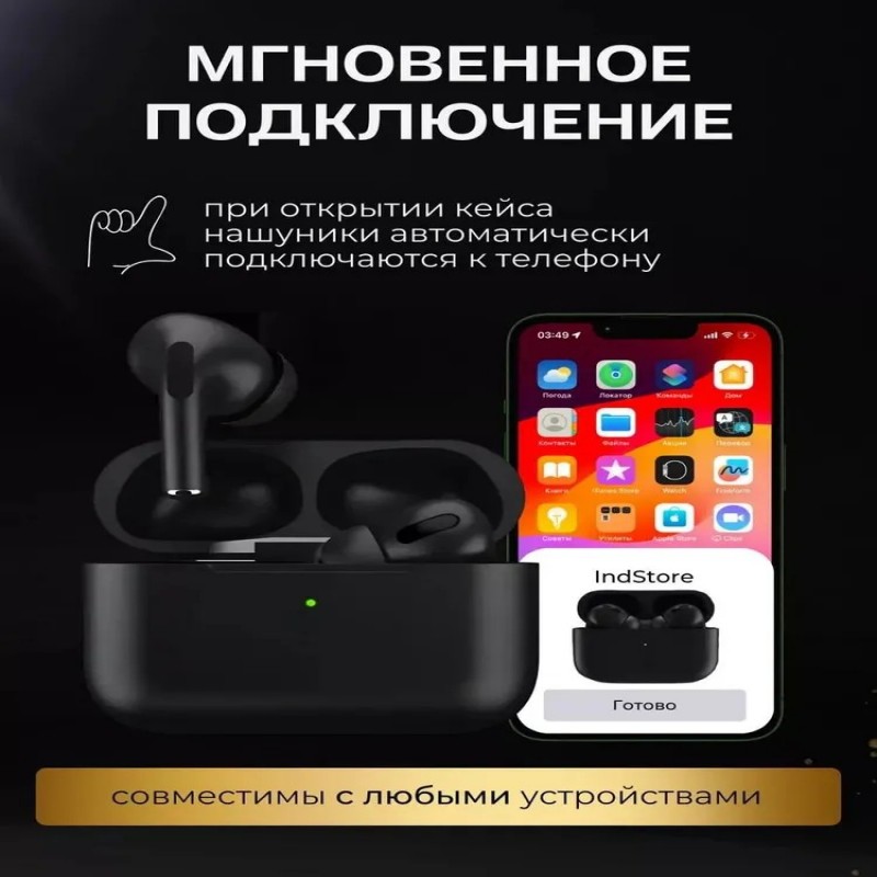Наушники беспроводные для телефона айфон и андроид с микрофоном черные