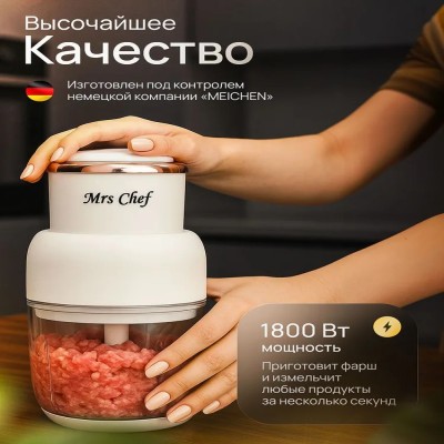 Электрический кухонный измельчитель Mrs Chef (Миссис Шеф) от немецкого производителя MEICHEN (Майхен) совмещает в себе несколько разных кухонных устройств: измельчитель, мясорубка, миксер, блендер, кофемолка.