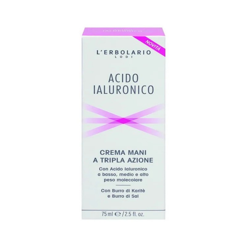 Крем для рук тройного действия с гиалуроновой кислотой и маслами ши. Увлажняющий, питательный, антивозрастной эффекты. Крем с гиалуроновой кислотой, обладающий превосходным увлажняющим и восстанавливающим действиями. Эфиры воска жожоба, защищают кожу от внешних агрессивных воздействий, ценные масла ши обеспечивают коже глубокое питание. В составе гиалуроновая кислота с низким, средним и высоким молекулярным весом, воск жожоба, масло ши, масло семян гибискуса. Без силиконов, парабенов и петролатума. 98% ингредиентов натурального происхождения. Продукт на 100% произведен в Италии, не тестировался на животных и не содержит тяжелых металлов. Упаковка полностью сделана из экологичных материалов и подлежит переработке. Нанесите на кожу рук массажными движениями.