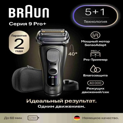 Идеальный результат без усилий с электробритвой Braun 9 Pro+ Серии 9615s — это наша самая лучшая инновационная бритва, которая дарит комфорт и удовольствие от бритья ежедневно, годами. Braun 9 Pro+ имеет 5 идеально синхронных бреющих элементов с защитой кожи, 40000 режущих движений/сек и 40° плавающую головку для идеального результата на любой щетине - 1, 3 или 7-дневной. Эргономичную конструкцию из премиальных материалов дополняет точный ProTrimmer с лезвиями из хирургической нержавеющей стали для точных линий. Уникальная технология Sonic обеспечивает захват большего количества волос за счёт 10 000 микровибраций, значительно улучшая эффективность бритья, а технология ProSensoAdapt сканирует густоту щетины и автоматически подстраивает мощность до 300х/сек. 100% водонепроницаемость идеально подходит для сухого и влажного бритья. Модель имеет интерактивный LED-дисплей и поддерживает быструю зарядку. 1 час зарядки обеспечивает Вам до 60 минут беспроводного бритья. Быстрой 5-минутной зарядки достаточно для 1 сеанса беспроводного бритья. Особенности электрической бритвы Braun Series 9 Pro+ 9615s: • 5 бреющих элементов: идеальная эффективность и защита кожи. • 30000 режущих движений в секунду для идеальной гладкости. • 40° плавающая головка - идеальное бритьё даже в труднодоступных местах. • Мощный мотор ProSensoAdapt - анализирует щетину и автоматически подстраивает мощность до 300х/сек. • Встроенный точный ProTrimmer для точных линий. • 100% водонепроницаемость: для идеально гладкого бритья где угодно. В комплекте: электробритва мужская 9615s, зарядная станция, премиальный чехол для хранения, зарядное устройство SmartPlug и щёточка для чистки. Braun - Совершенство в каждой детали. Немецкое качество. Официальная гарантия от производителя. Мужская электробритва Braun.
