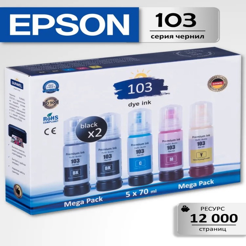 Чернила SUNWEL 103 - оптимальный выбор для надежной работы принтера EPSON и экономичной печати.