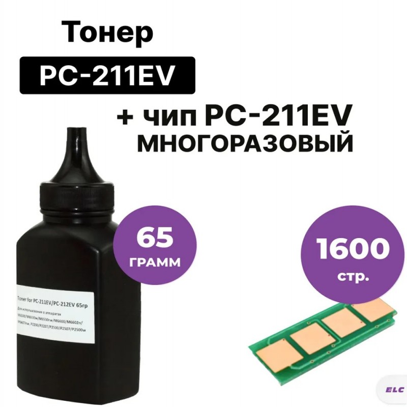 Комплект тонер+чип (PC-211EV) для Pantum банка 65г+многоразовый чип ELC.