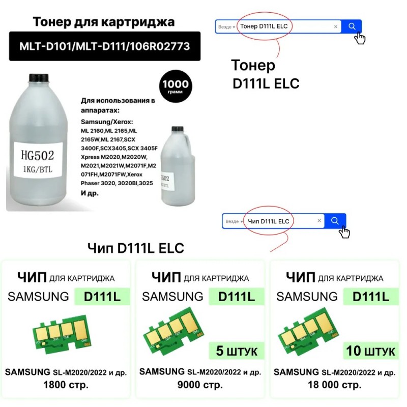 MLT-D111L Samsung 111L черный с чипом, в коробке - 1 шт.