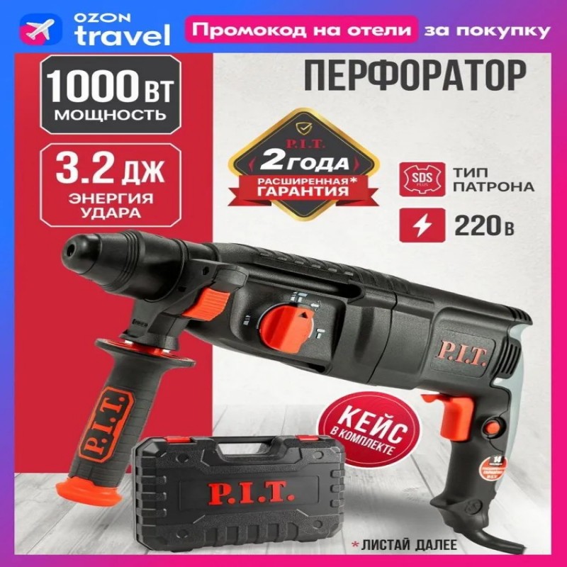 Качественный, высокопроизводительный перфоратор P.I.T. PBH26-C5 для эффективного выполнения тяжёлых работ. Подходит для долбления бетона, бурения отверстий, а также сверления в дереве, бетоне и металле.