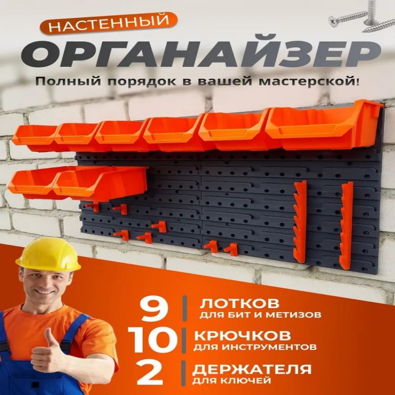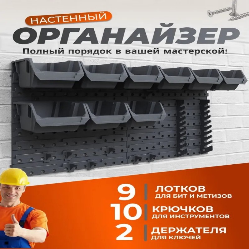 Данный подвесной органайзер с 9 боксами не только экономит рабочее пространство (к примеру, столы, стеллажи), позволяя задействовать вертикальные поверхности, но и способствует быстрому нахождению необходимого инструмента благодаря четкой структуре хранения.