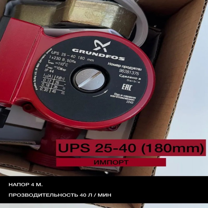 Циркуляционный насос Grundfos UPS 25-40 180 мм, арт. 132540 - простой и надежный в эксплуатации насос. Корпус насоса выполнен из чугуна. В основном его используют для одно-или двухтрубных систем отопления, но так же можно использовать в смесительных контурах крупных систем. Насос прост в эксплуатации. Установив его один раз, Вам больше не придется прибегать к помощи специалиста. Насос оснащен тремя скоростями вращения вала, который, как и подшипники, выполнен из керамики. Комплектация Насос, гайки, прокладки, инструкция-паспорт, гарантийный талон, упаковка