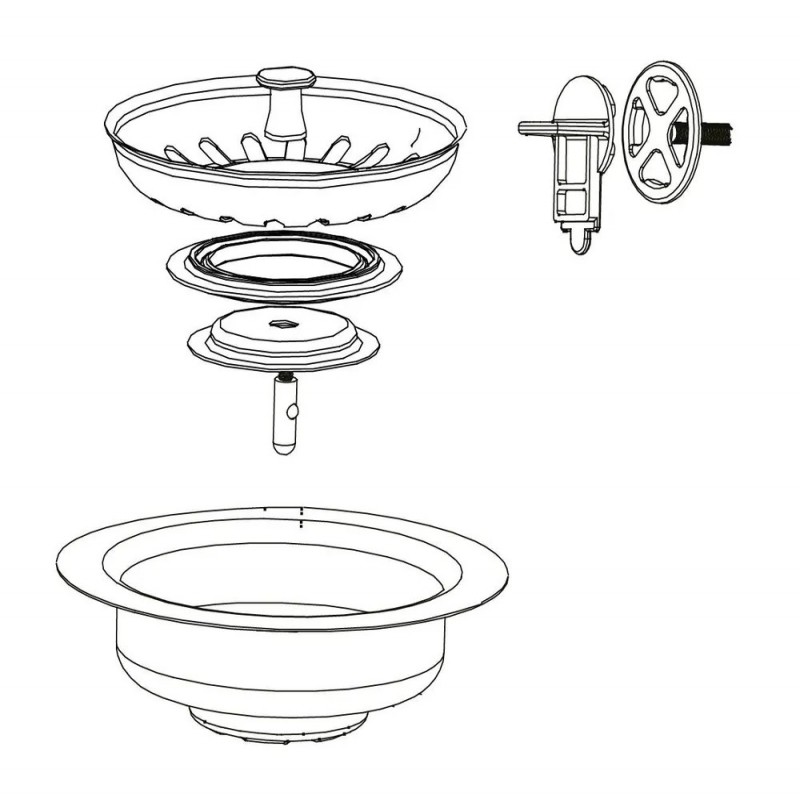 Комплект фурнитуры состоит из перелива и корзинчатого вентиля золотого цвета. Большой корзинчатый вентиль 3 ½ задерживает остатки пищевых отходов, препятствуя попаданию в сифон и дальнейшему засору стока. Корзина вентиля легко извлекается для удаления скопившегося мусора и также легко устанавливается обратно. Такой комплект будет гармонично смотреться с любыми мойками и станет отличным решением для кухонных интерьеров, где присутствуют металлические элементы этого цвета.