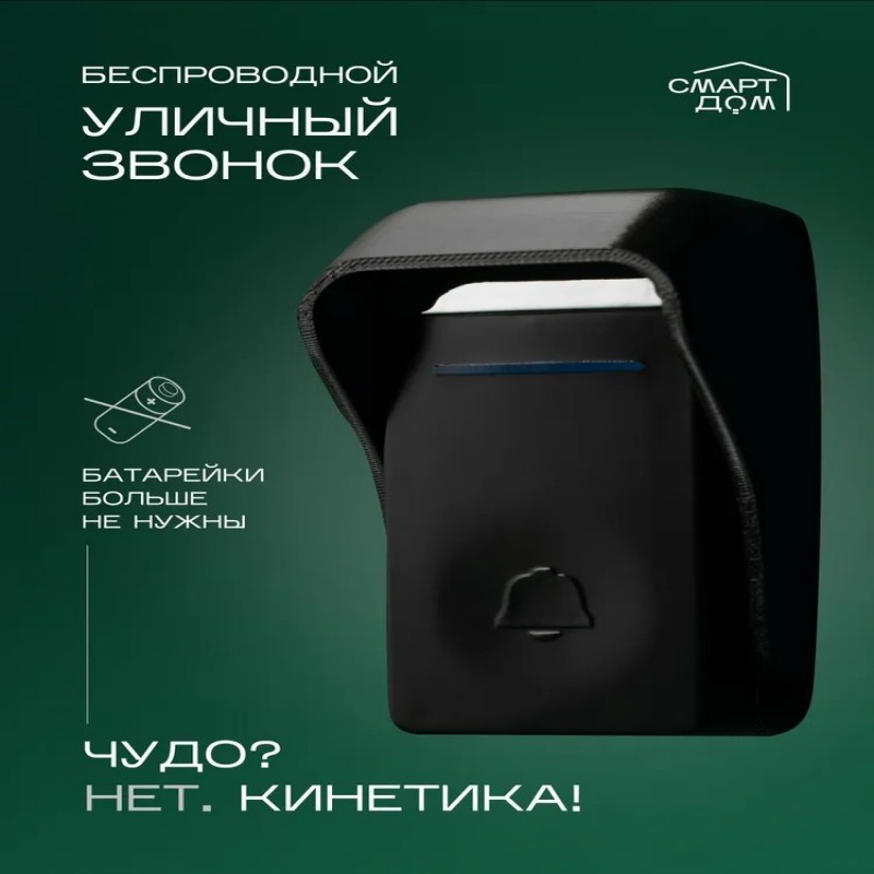 Этот беспроводной дверной звонок с кинетической кнопкой – истинное произведение современной электроники. Сочетая в себе надежность и инновационные технологии, он обеспечит вашему дому или квартире надежную защиту. Вот почему наш дверной звонок с козырьком станет незаменимым аксессуаром для вашей двери или калитки.
