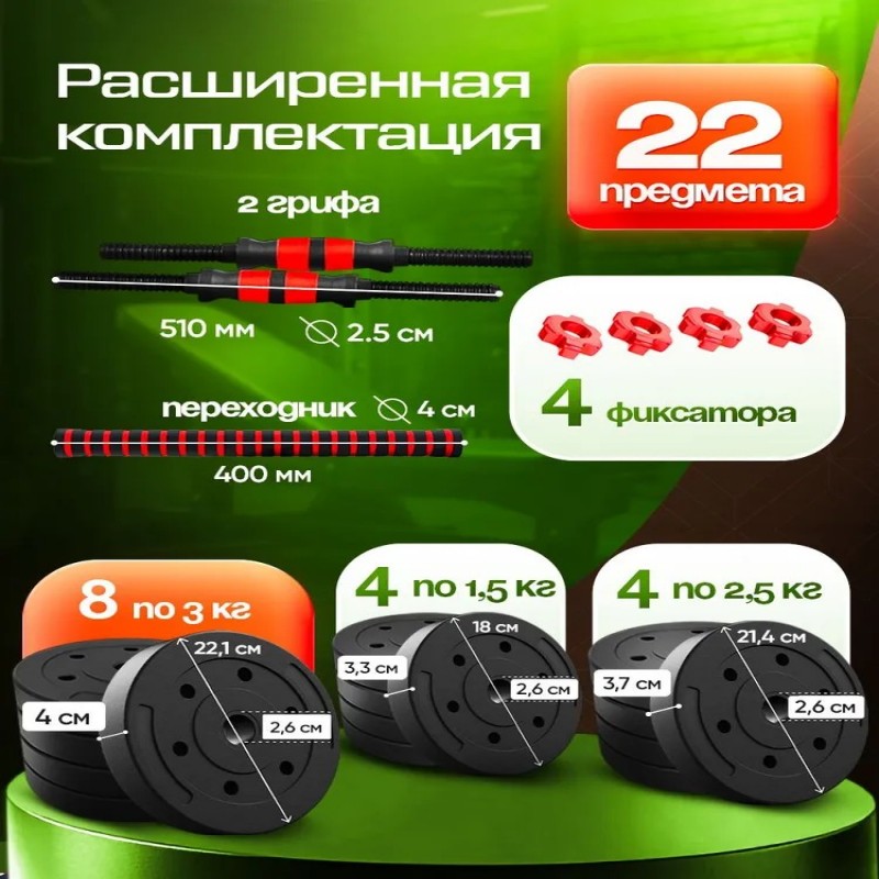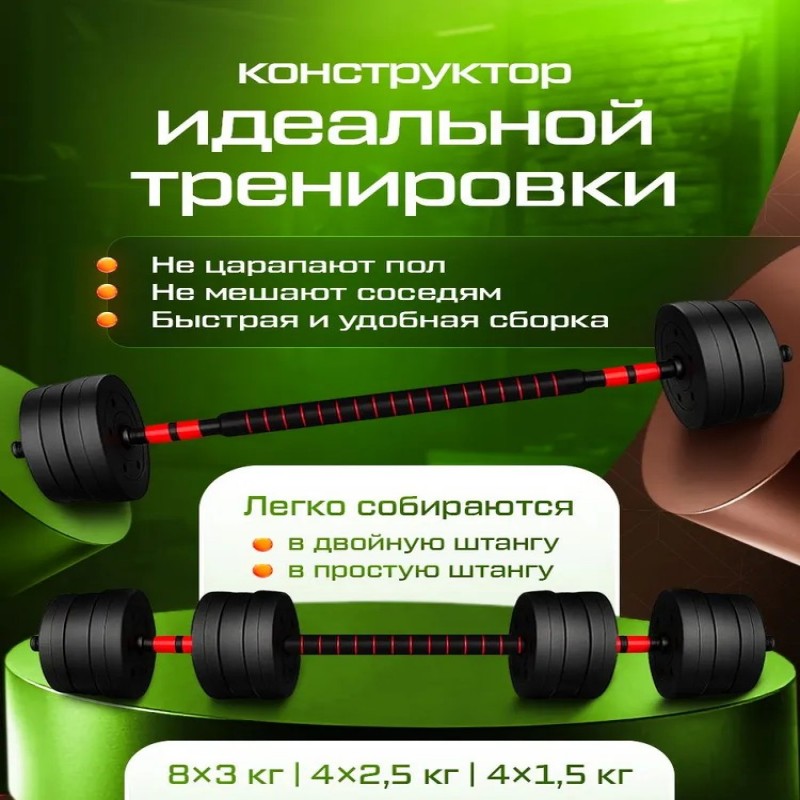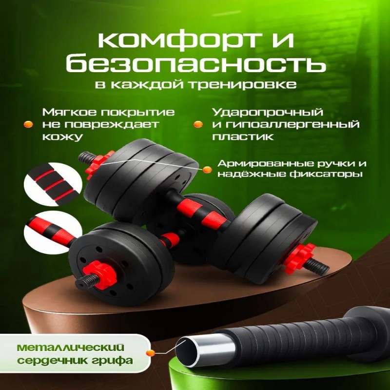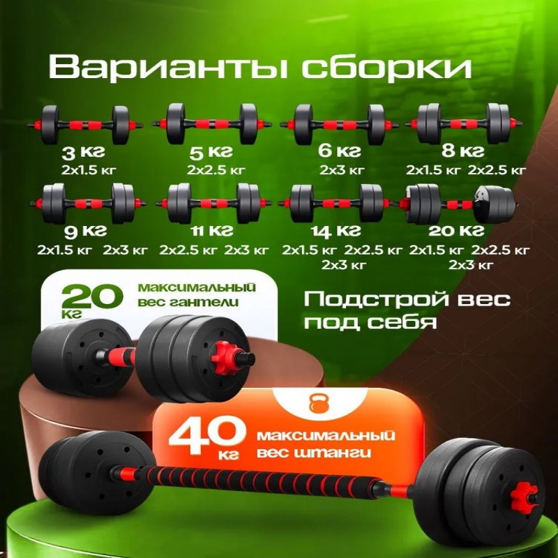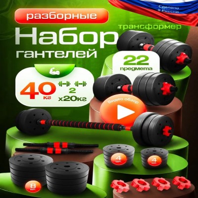 Гантели разборные трансформер 40 кг - Штанга спортивная с грифом - Наб
