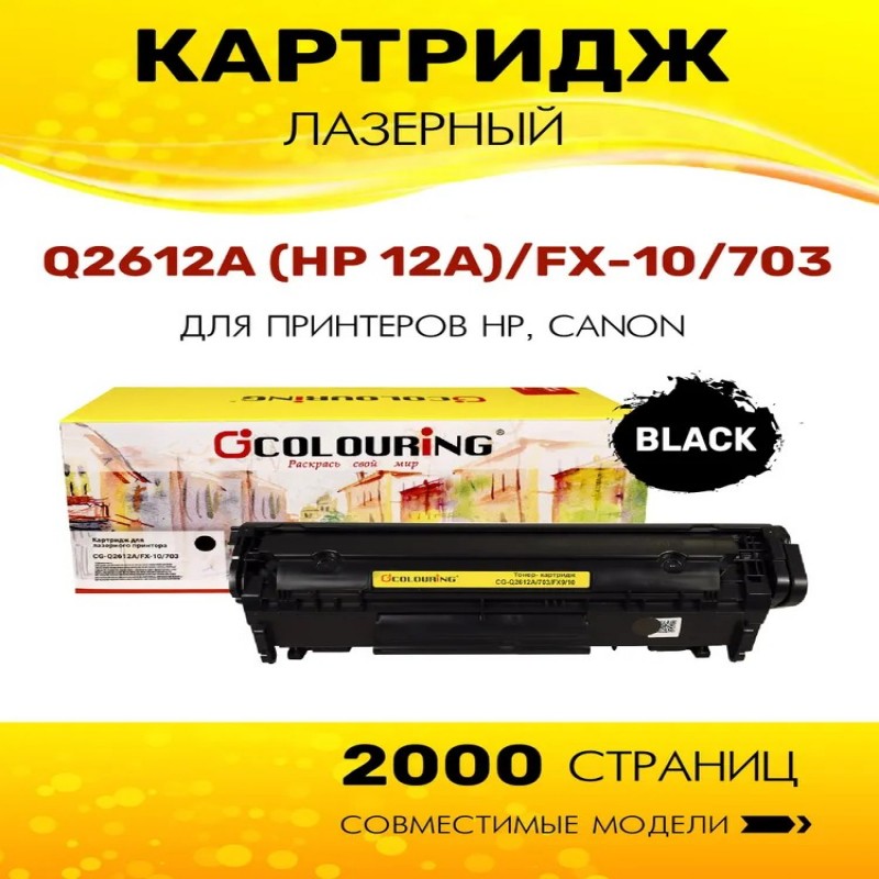 Перезаправляемый тонер-картридж Q2612A/FX-10/703 (HP 12A) подходит для лазерных принтеров и МФУ