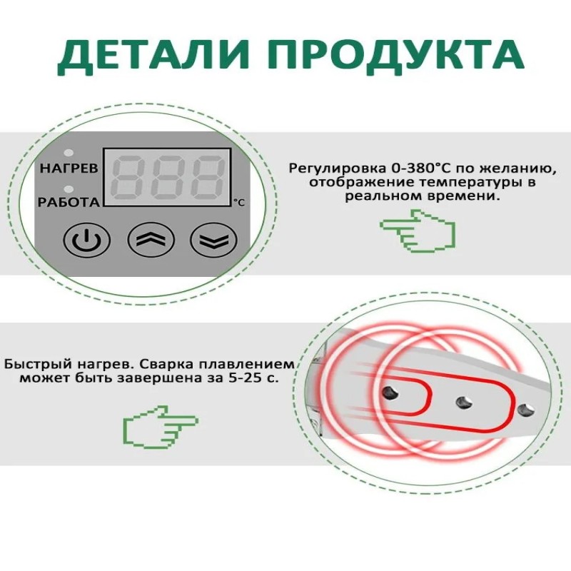 Быстрый нагрев. Сварка плавлением может быть завершена за 5-25 с.