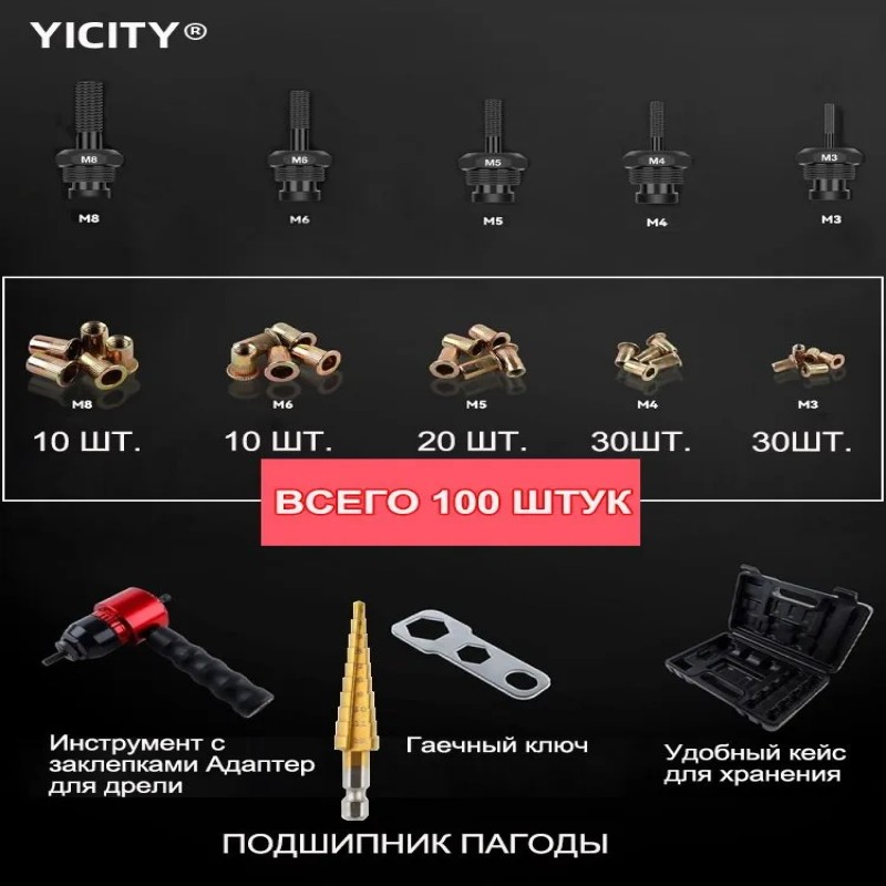 YICITY Насадка заклепочник для шуруповерта с комплектом гаек,Шестигран