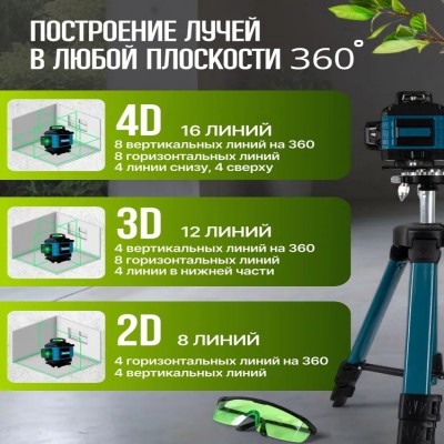 Профессиональный лазерный уровень строительный 360 4D / Нивелир, 16 лу