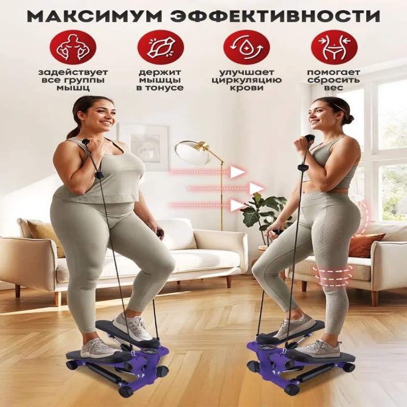 Мини степпер тренажер MOTIWAYS с эспандерами, для ног и рук, гидравлич