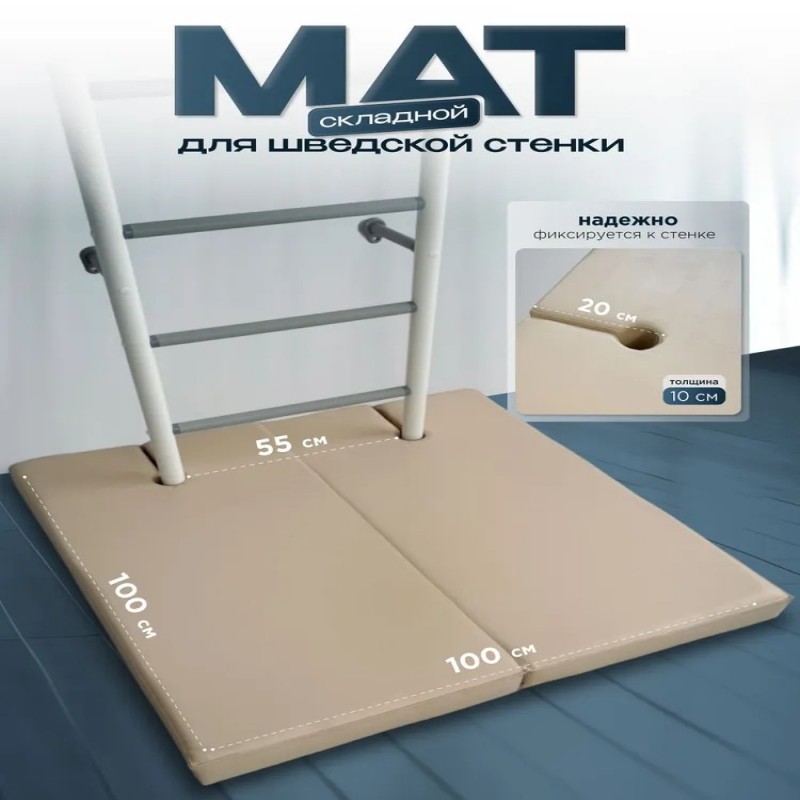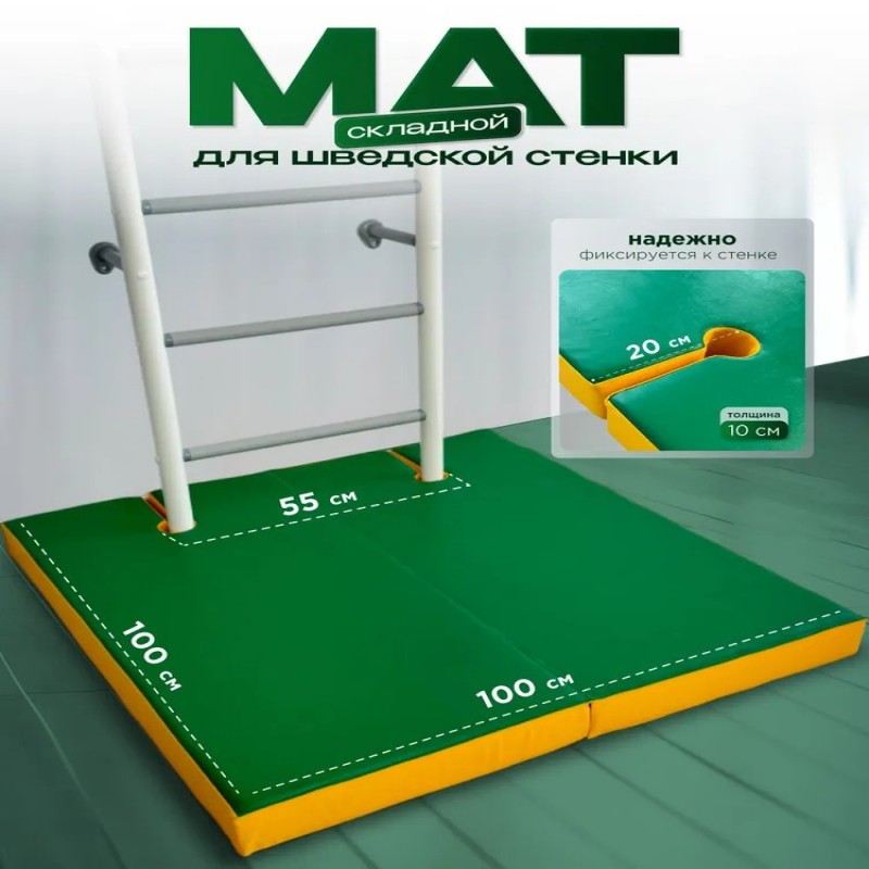 Складной мат для шведской стенки размером 100х100х8 см обеспечивает безопасность и комфорт во время занятий спортом и игр. Благодаря безопасной толщине в 8 см, мат смягчает прыжки и падения, предотвращая травмы. Вырезы для опор-ножек шведской стенки и ДСК позволяют зафиксировать положение мата, обеспечивая стабильность и надежность, расстояние между выемками 45см (внутреннее), 55см (внешнее)