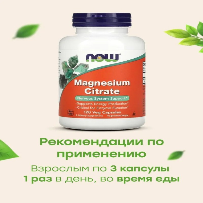 Цитрат магния от NOW — источник магния, одного из важнейших внутриклеточных макроэлементов в организме.