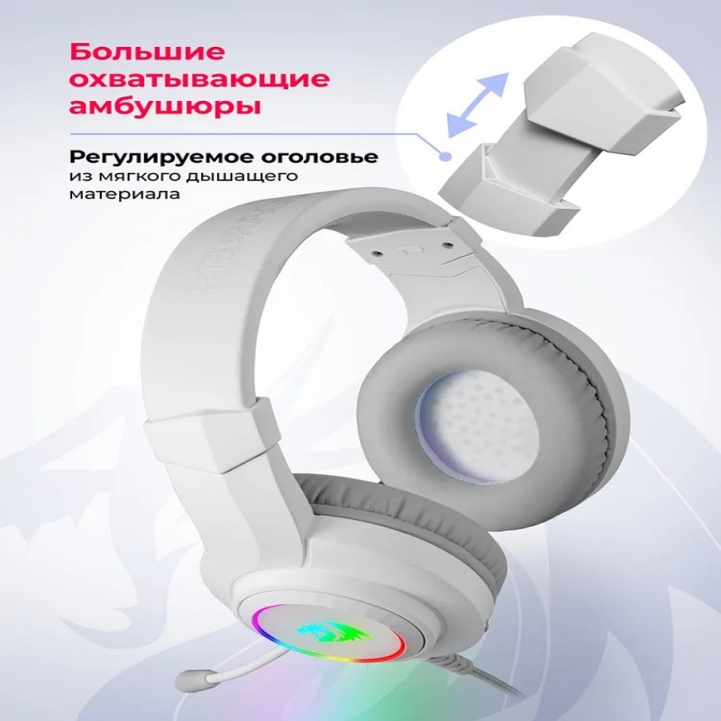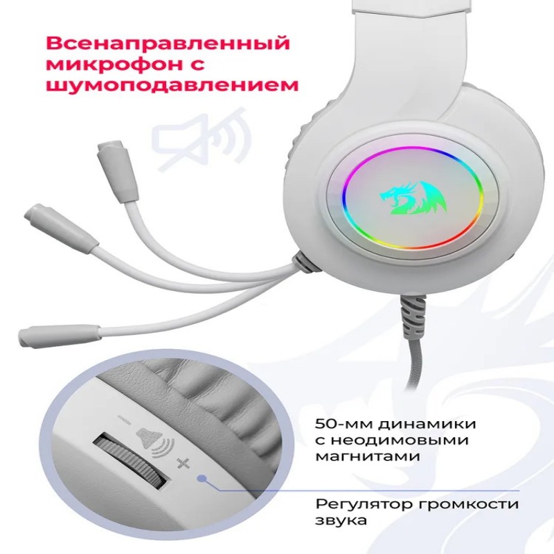 REDRAGON Игровые наушники проводные с микрофоном Hylas белые кабель 1.