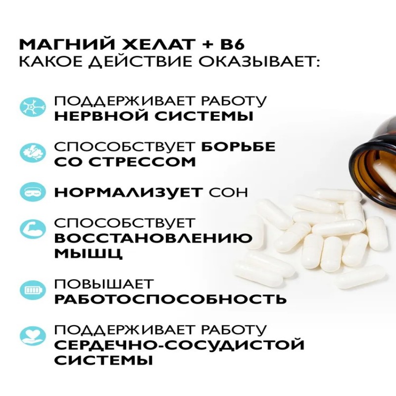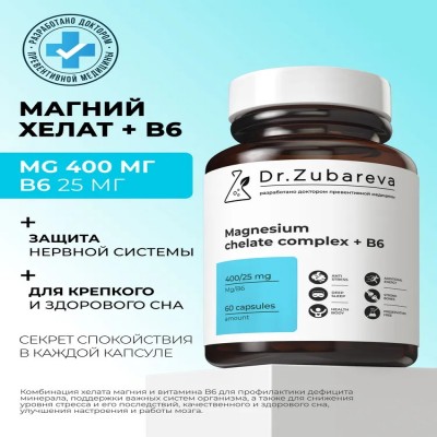 Магний хелат в6 от доктора Зубаревой быстро восполнит резервы витамина. Магний хелат глицинат и витамин b6, от практикующего доктора-превентолога Зубаревой и ее команды, дарит организму энергию и борется со стрессом. Магний б 6 необходим для крепкого здоровья и хорошего самочувствия. Дефицит магне b6 приводит к тревоге и онемению конечностей.
