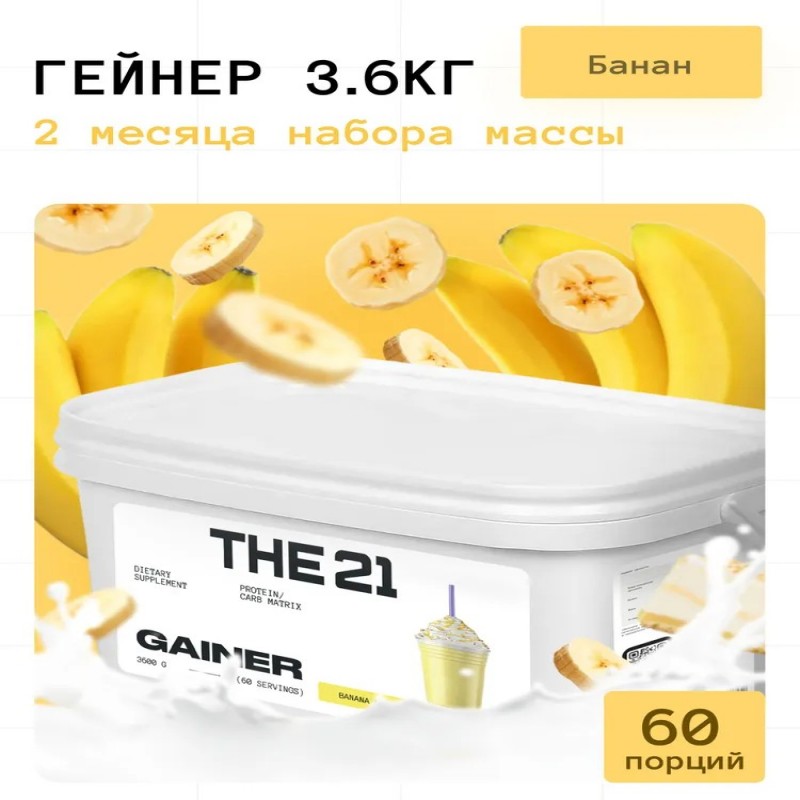 Гейнер от бренда THE 21 - идеальное спортивное питание как для любителей, так и для профессионалов. Смесь для спортивного питания в виде сухого порошка для разбавления водой или молоком содержит все необходимые вещества для того чтобы обеспечить набор массы и рост мышц.