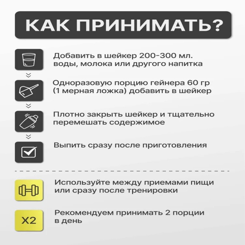 Генер масс для быстрого набора мышечной массы и веса, подходит как для мужчин, так и для женщин. Белково-углеводный коктейль со сложными углеводами рекомендуем готовить с использованием шейкера, для более насыщенного вкуса смешивайте гейнер с молоком.