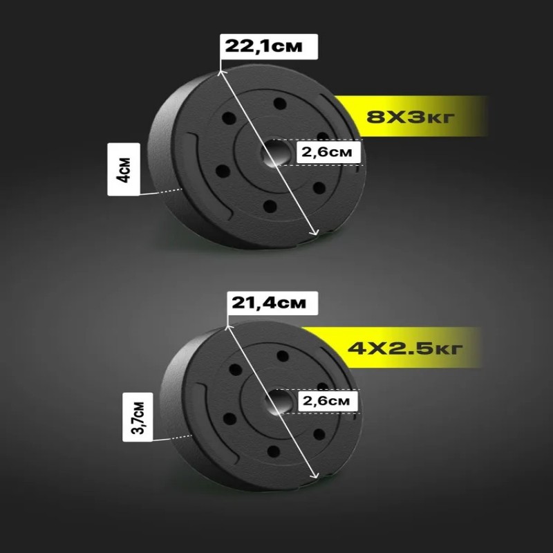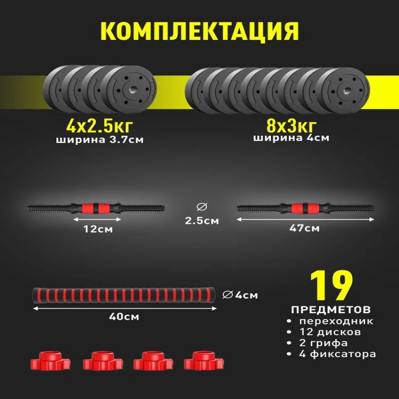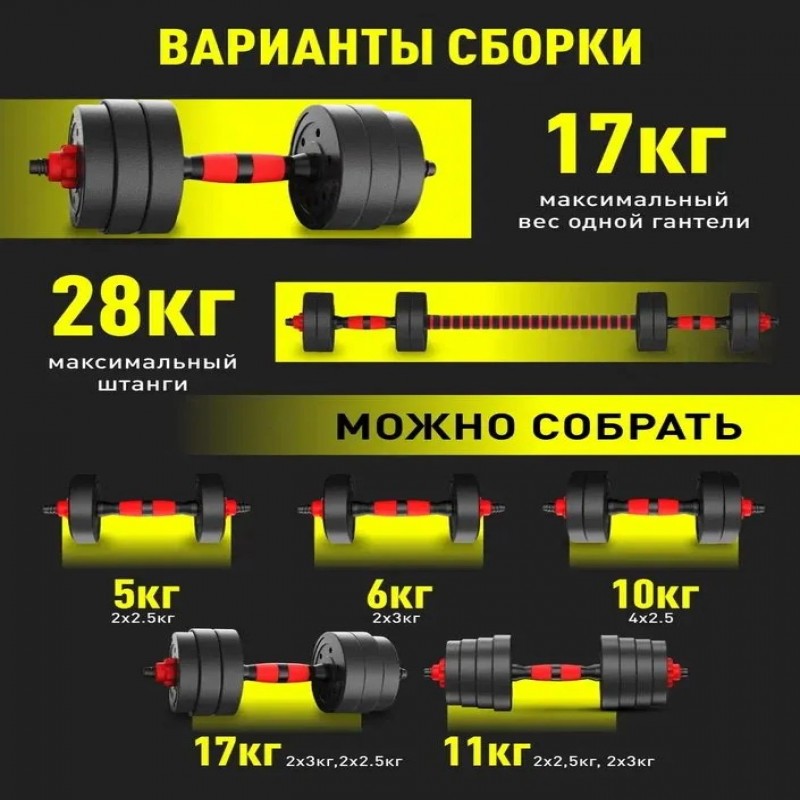 Гантели разборные 17 кг 2 шт, Общий вес 34 кг