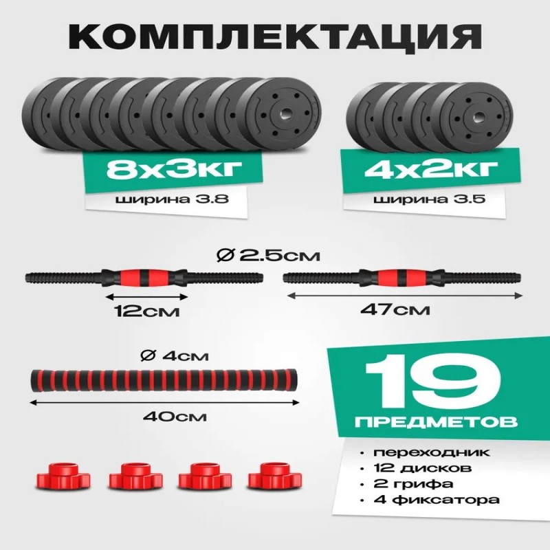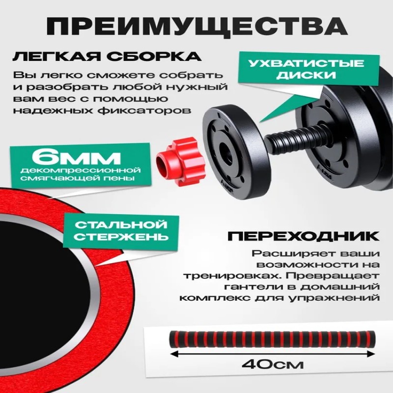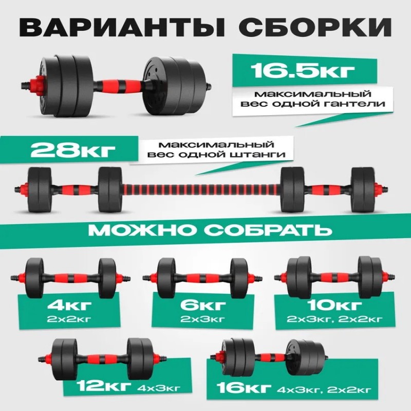Гантели разборные 16 кг 2 шт или набор гантелей 20 кг с грифом для шта