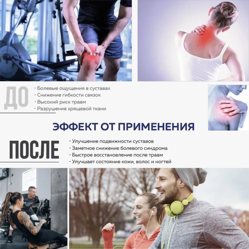 Комплекс на основе глюкозамина и хондроитина: Глюкозамин с хондроитином и MSM (метилсульфонилметан) восстанавливают соединительные ткани, снимают воспаление и уменьшают боли в суставах.Отлично подходят как для спортсменов, так и для всех, кто заботится о здоровье суставов.