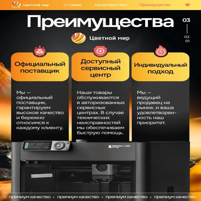 Обратите внимание! Мы поставляем 3D-принтеры Bambu Lab c EU-маркировкой, которые предназначены для Европы и России. Это позволяет беспрепятственно скачать обновление прошивки на 3D-принтер, а также пользоваться удаленным управлением принтером через приложение в отличие от CN-версии, предназначенной для китайского рынка. Компания "Цветной мир" является официальным дистрибьютором Bambu Lab в России.