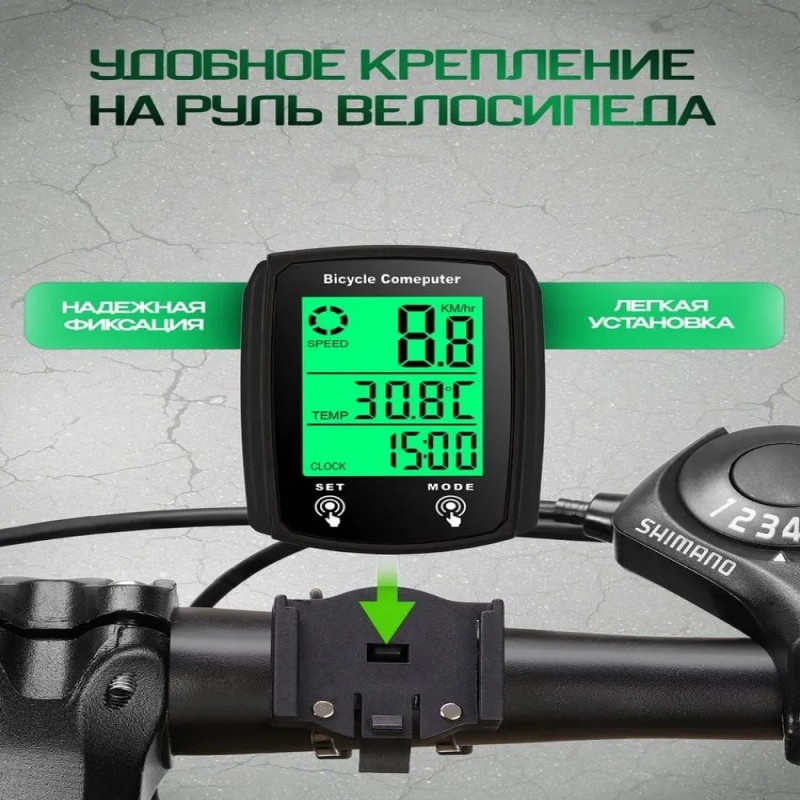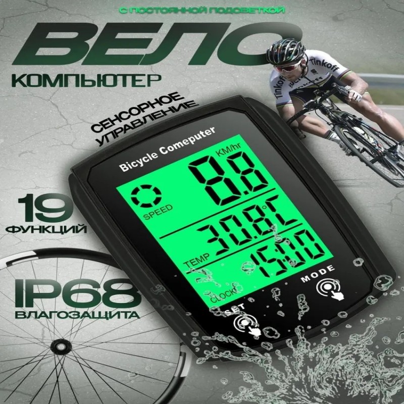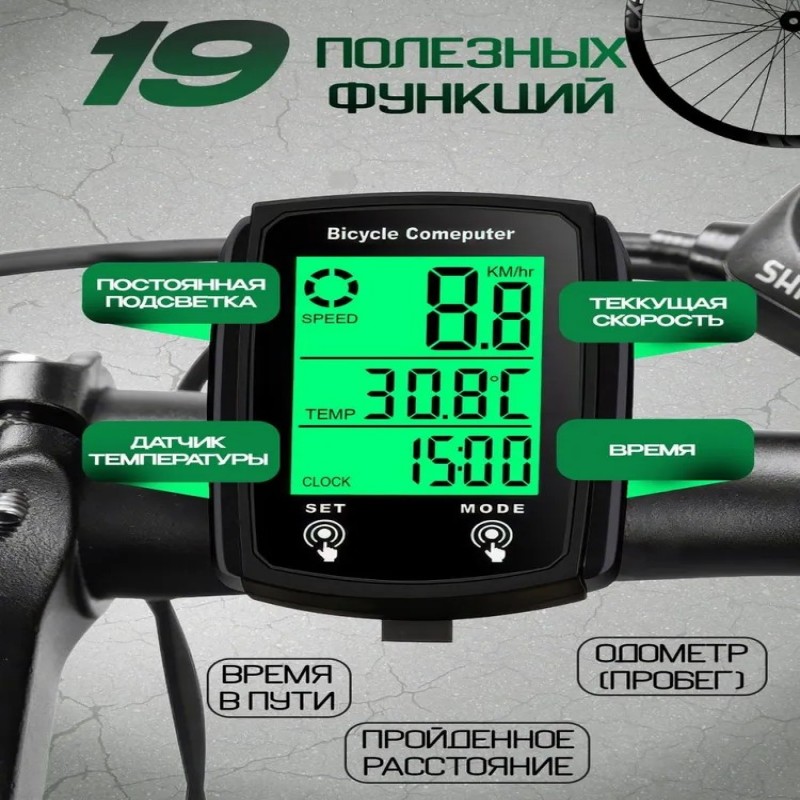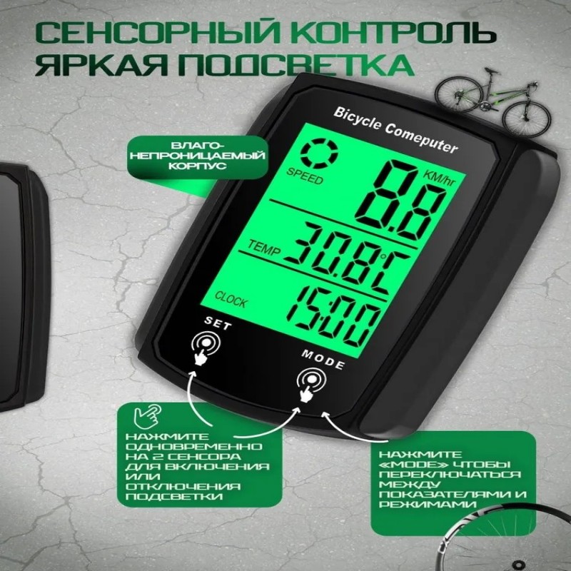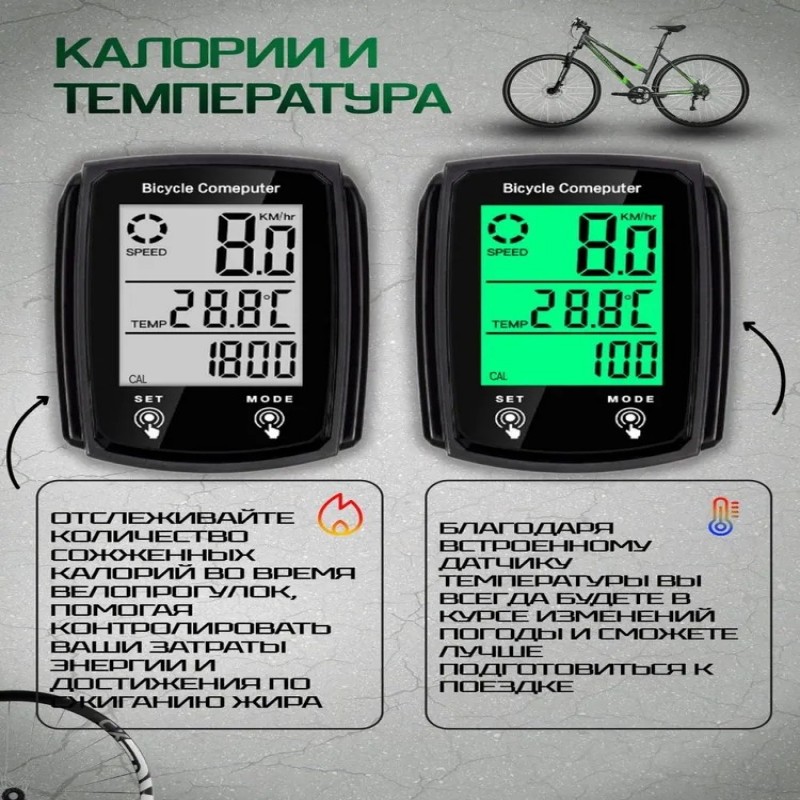 КомплектацияВелокомпьютер - 1шт; Датчик - 1шт; Хомуты - 4шт; Кронштейн; Магнит; Батарейка