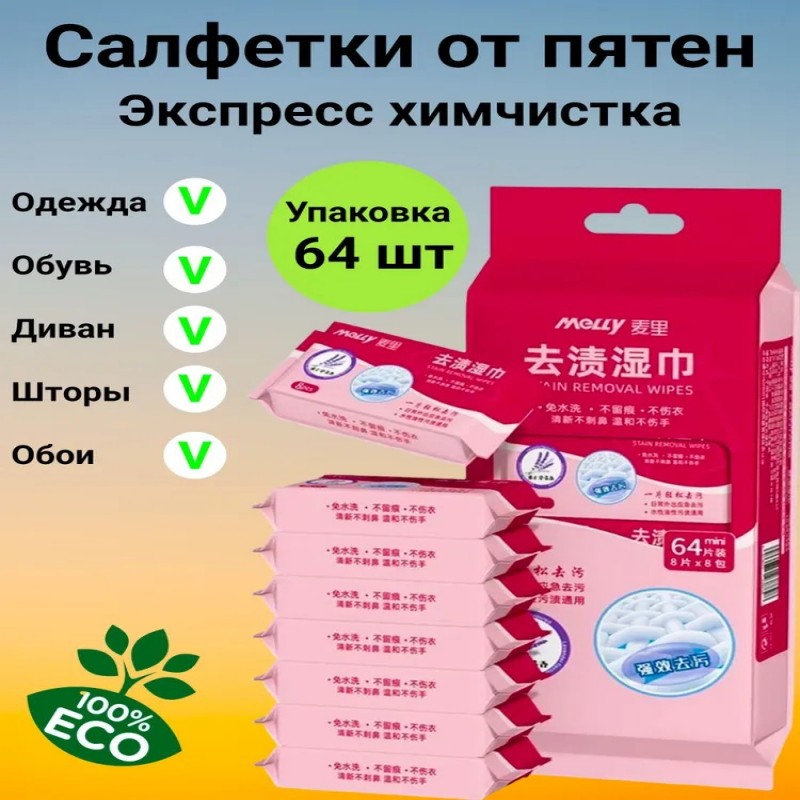 Влажные пятновыводящие салфетки станут надежным помощником в борьбе с загрязнениями на одежде и обуви. Этот продукт идеально подходит для быстрого и легкого удаления пятен, что делает его незаменимым в повседневной жизни. В упаковке 64 шт. мини-саше, что позволяет удобно носить их с собой в сумке или помещать в карман.