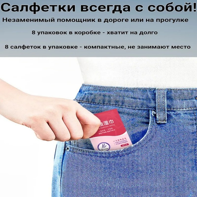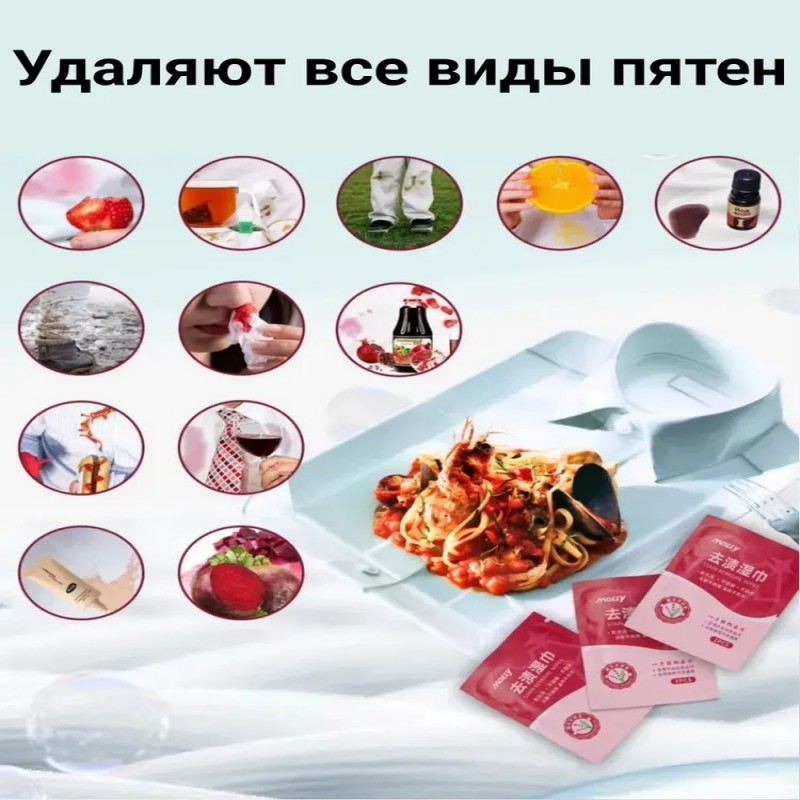 Салфетки отлично справляются с разного рода пятнами, включая жирные следы, следы от напитков и даже застарелые загрязнения. Благодаря их компактному формату, вы сможете использовать их в любое время и в любом месте — на прогулке, в поездке или на деловой встрече. Эффективность чистки обеспечивается специально разработанной формулой, которая работает быстро и не требует дополнительных усилий.Особенностью этих салфеток является то, что они безопасны для тканей, что позволяет вам не беспокоиться о повреждении одежды. Также они отлично подходят для очистки обуви — неважно, из какого материала она изготовлена. Несмотря на свои небольшие размеры, салфетки обладают высоким уровнем впитываемости и легко справляются с даже самыми сложными загрязнениями.Использовать влажные салфетки просто: всего лишь вытяните одну из саше, вспеньте, протрите загрязненный участок и наслаждайтесь чистотой. Этот продукт идеально вписывается в активный образ жизни и станет вашей защитой от неприятностей с одеждой и обувью.Не упустите возможность сделать вашу жизнь проще и комфортнее с помощью наших влажных пятновыводящих салфеток! Они достойны стать вашим надежным спутником, сократив время на уход за вещами и сохранив их безупречный вид. Поддерживайте свежесть и чистоту вашей одежды и обуви в любое время с удобными и эффективными салфетками.