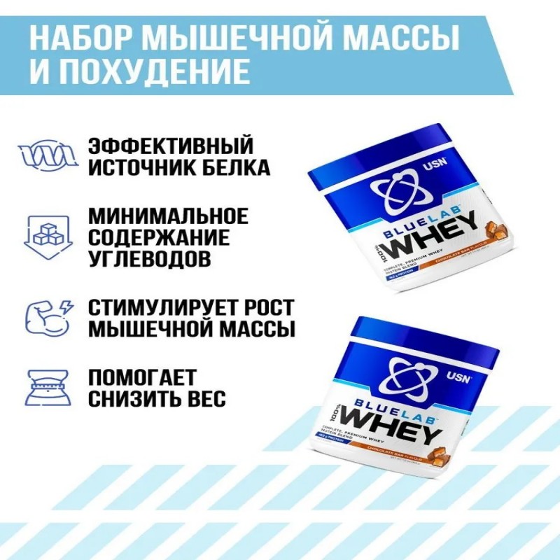 BlueLab 100% Whey Protein - это ультра-премиальная смесь изолята, концентрата и гидролизата сывороточного протеина высочайшего качества для оптимального развития, поддержки и восстановления мышц. 100%-ный сывороточный протеин BlueLab разработан специально для потребителя в различных захватывающих и восхитительных вкусах. Рекомендации по применению: Одна порция: Смешайте ±1 мерную ложку (32 г) со 150-200 мл холодной воды. Оптимальная двойная порция: Смешайте ±2 мерные ложки (64 г) с 300-400 мл холодной воды. Хорошо взбалтывайте в течение 30 секунд и дайте настояться в течение 60 секунд. Перед употреблением снова взболтайте. Увеличьте потребление белка с 1 до 5 порций в зависимости от ваших физических показателей и потребности в белке.