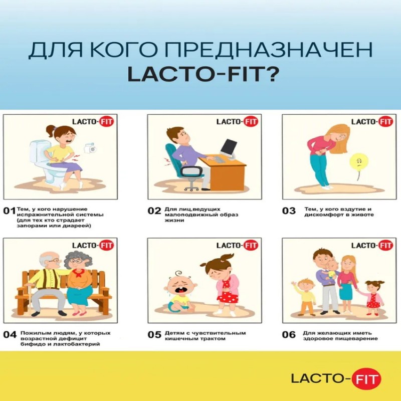 Независимо от вашего возраста, LactoFit Gold обеспечит вас необходимыми пробиотиками и пребиотиками для поддержания здоровья ЖКТ.