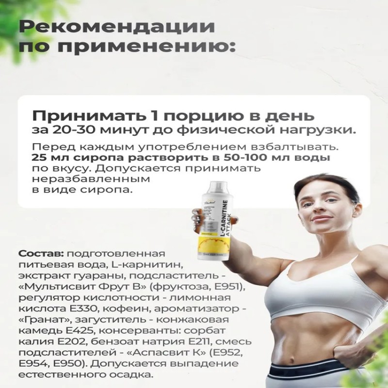 L-CARNITINE 500 мл l карнитин жидкий, который обеспечивает быстрое и эффективное усвоение в организме, делая его удобным для использования и позволяя легко контролировать дозировку, а так же использовать как коктель для похудения или энергетика.