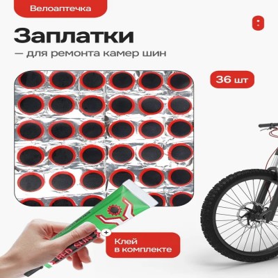 Набор заплаток для ремонта камер велосипеда 36 шт + клей, велоаптечка