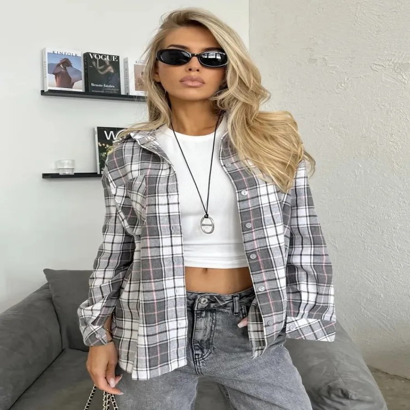 Погрузитесь в мир непринужденного стиля с нашей оверсайз-рубашкой в клетку! Этот трендовый элемент гардероба создан для тех, кто ценит комфорт без потери актуальности. Свободный крой дарит ощущение легкости и свободы, а классическая клетка придает образу уверенности и характера. Носите её расстегнутой поверх любимого топа для создания многослойных образов, заправьте в джинсы или брюки для более структурированного вида, или повяжите на бедрах для придания образу гранжевого шика. Эта рубашка – идеальный спутник для любого случая, от утреннего кофе до вечерних встреч.