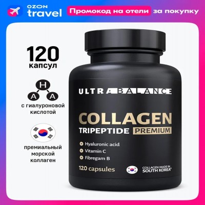 Collagen Tripeptide Premium от компании Ultra Balance производится из высококачественного морского низкомолекулярного трипептид коллагена из Кореи. С гиалуроновой кислотой, витамином С и фибрегам В. Производство сертифицировано по международным стандартам GMP и ISO 22000.
