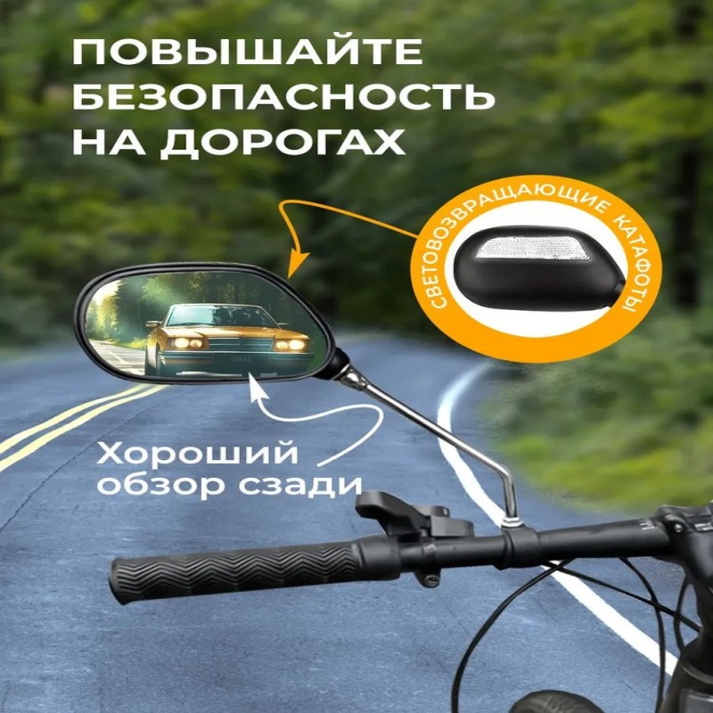Зеркало заднего вида для велосипеда - это удобное зеркало велосипедное и практичное устройство, которое обеспечивает безопасность и максимальный обзор на дороге во время катания на велосипеде. Белый катафот на обратной стороне зеркала увеличивает видимость и помогает обеспечить безопасность в темное время суток.