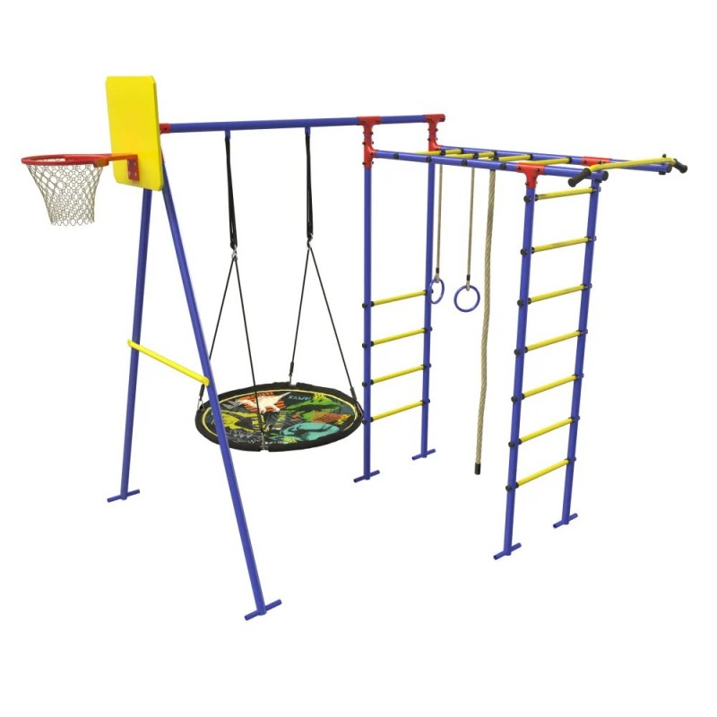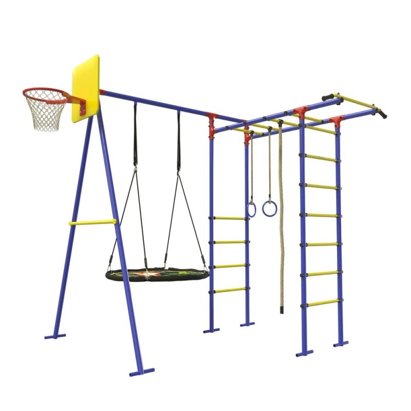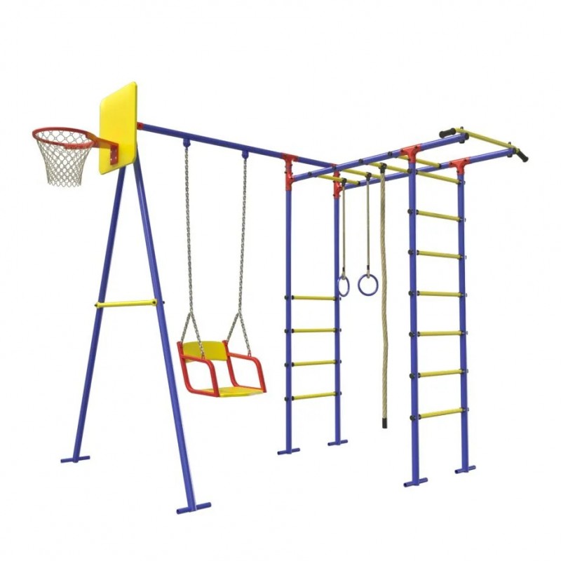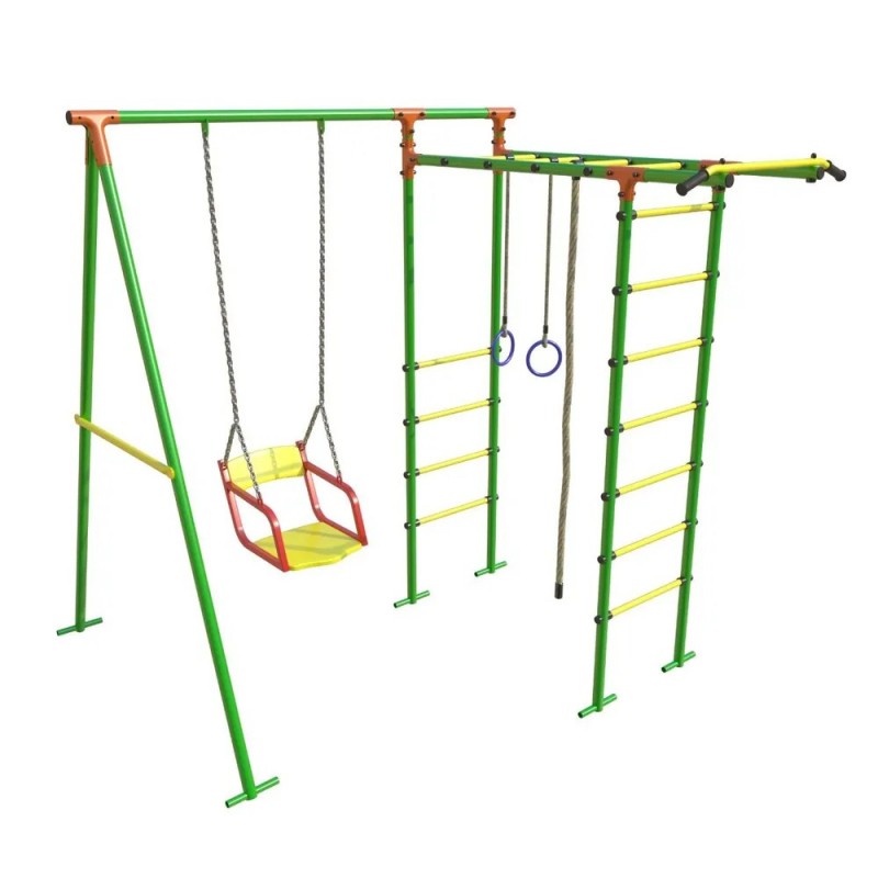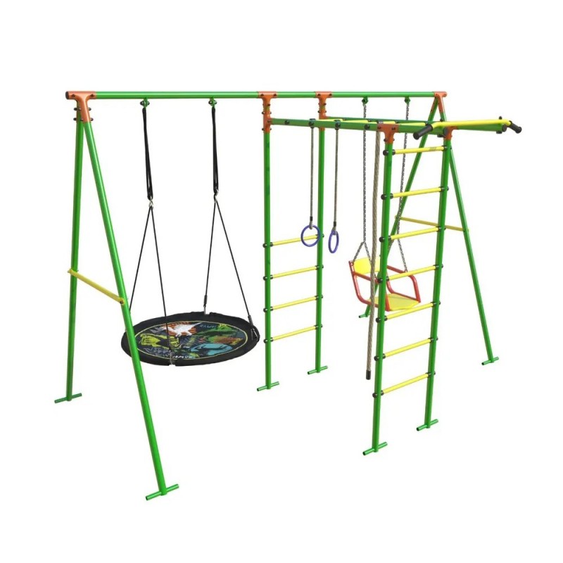 В комплектацию входит:— Шведская стенка,— Рукоход,— Качели-гнездо,— Кольца,— Канат,— Турник— Баскетбольное кольцо (В комплекте с 14.06.2024)Характеристики и размеры спортивного комплекса:Способ установки: Основания стоек бетонируютсяЦветовое исполнение: Зеленый-желтый-оранжевыйРазмеры (ВxШxГ): 2100 х 2000 х 1540мм;Тип перекладин: Труба D 25 мм.Материал: Стальная труба D 42 мм.Вес изделия: 43 кг.Количество мест: 3Помещается в легковой автомобильУличный спортивный комплекс несомненно станет украшением Вашего участка и любимым местом игр для ваших детей.