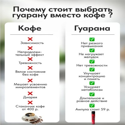 Мощный энергетический напиток для бодрости, тонуса и жиросжигания. В гуаране в 2 раза больше кофеина, чем в кофе.