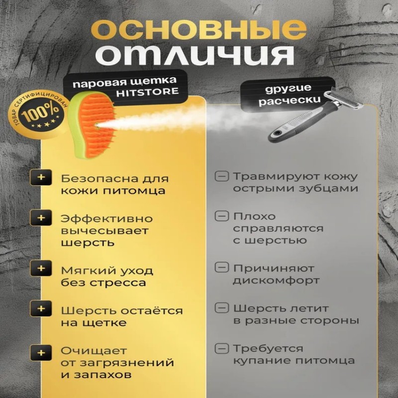 Наша паровая расческа гарантирует чистый пол и мебель в вашем доме. Пусть вся шерсть остается на щетке!