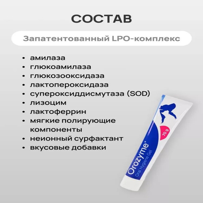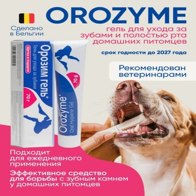 Orozyme — это современный ферментативный гель для ухода за полостью рта домашних животных: собак, кошек, хорьков и не только. Представлен в удобном тюбике объёмом 70 г с аппликатором, упакован в фирменную коробку. Orozyme — ваш надежный помощник в профилактике налета, неприятного запаха и воспаления десен.